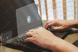 Man using computer laptop virtual icon play video. modern Internet technology , Social Networking, online marketing, digital online. concept technology