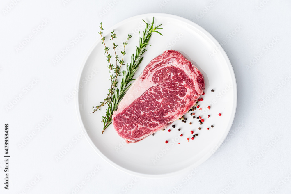 Close up beef rib eye steak isolated on white