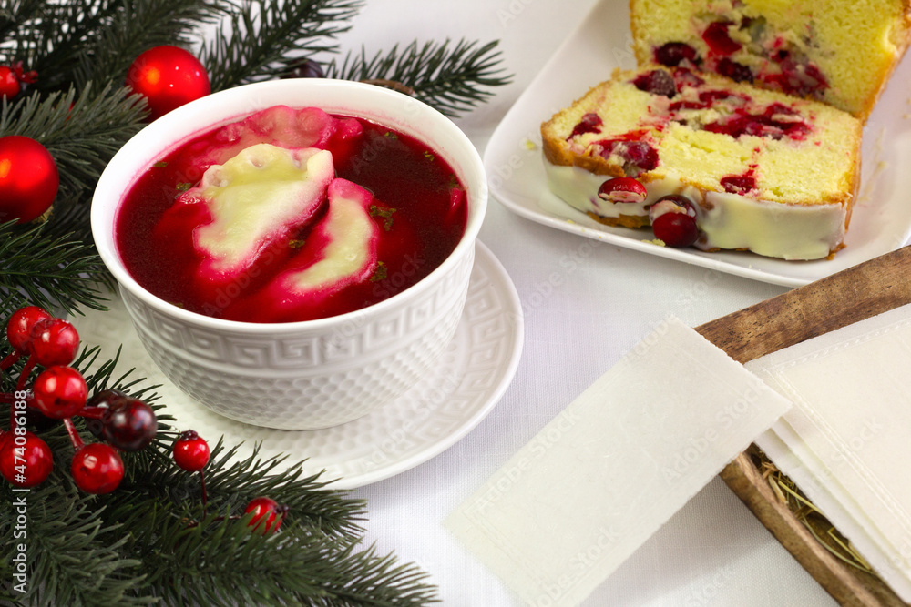 Stół z wigilijnymi potrawami i opłatkiem