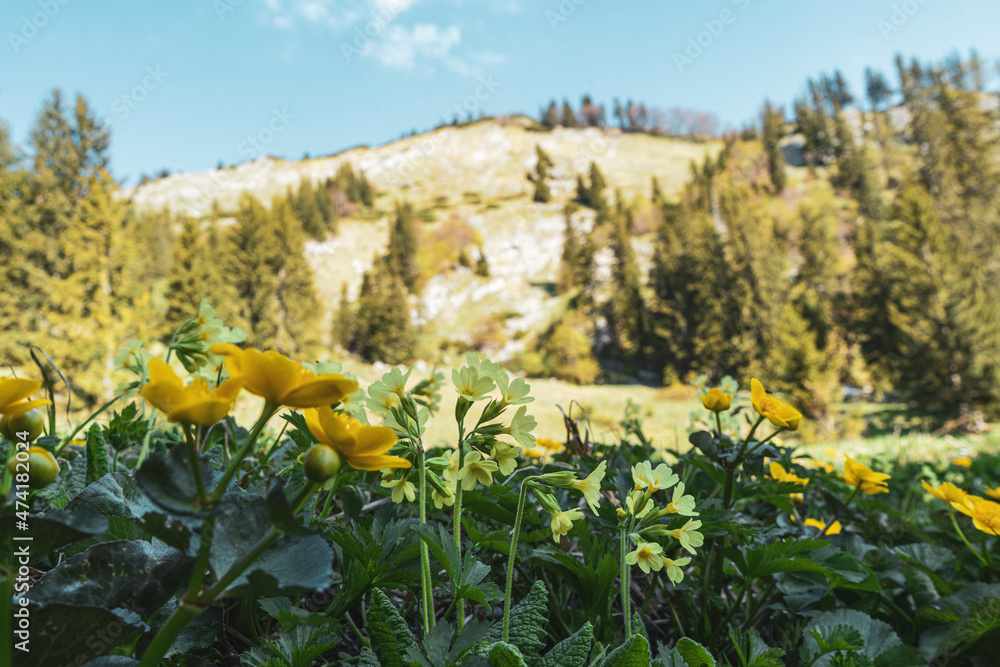 yellow flowers in the mountains