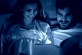 Pregnant woman with husband in bedroom Reading fairy tales to the baby in the womb