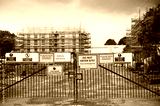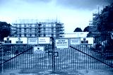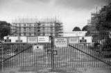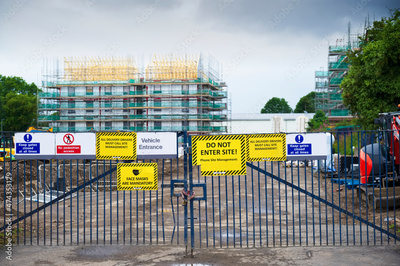 Construction site health and safety message rules sign board signage on fence boundary