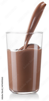 chocolate milk or cocoa drink pouring into glass