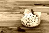 Top view of Tang Yuan(sweet dumplings balls) on Wooden background. Traditional cuisine for lantern festival, Mid-autumn, Dongzhi (winter solstice festival) and Chinese new year.