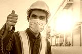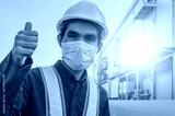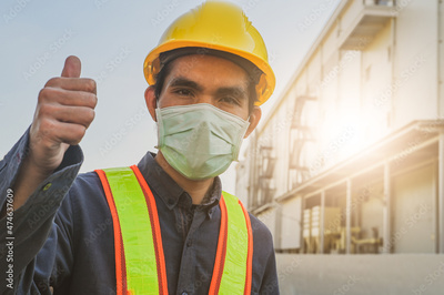 Engineer standing factory plant background , Technician workplace manufacturing maintenance facility