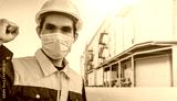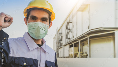 Engineer standing factory plant background , Technician workplace manufacturing maintenance facility