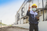 Safety Engineer using tablet inspection efficiency facility manufacturing of factory , Designer architecture engineering, Workplace production control