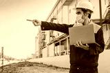 Safety manager inspection safety system factory , Engineer laptop computer technology