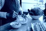 Close up of hands, elderly multi-cultural female whisking eggs for breakfast. Retired, healthy lifestyle at home.