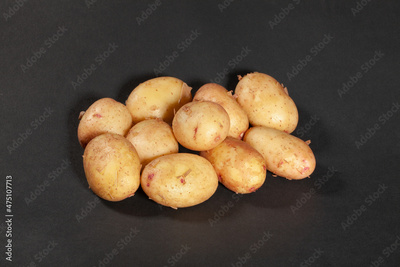 young potato on black background