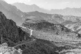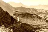 Middle East, Arabian Peninsula, Oman, Al Batinah South, Rustaq. A road passing through the desert mountains of Oman.