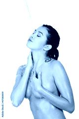 Young fit woman in shower washing her body