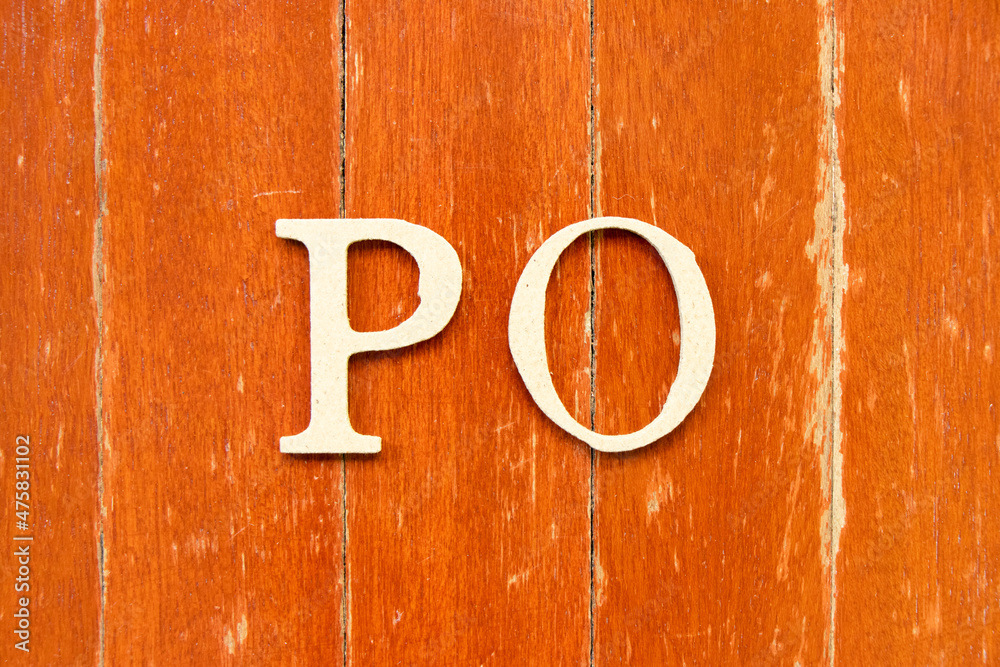 Alphabet letter in word PO (Abbreviation of purchase order) on old red color wood plate background