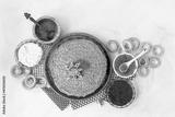 Pancakes with sun symbol, red caviar, jam, honey, bread bagels on table. Maslenitsa holiday, pancakes week. traditional slavic festival meal. flat lay