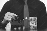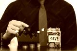 Finance and investment business. businessman virtual screen, graph and coin finance icons placed on the table.