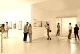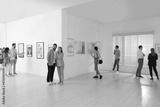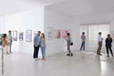People viewing exposition in modern art gallery