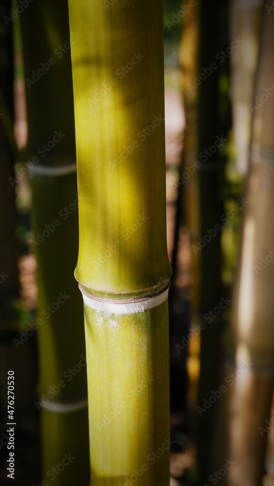 Green bamboo stems on blurred background