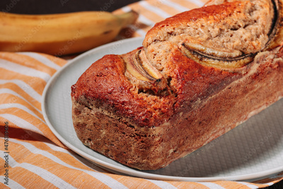 Freshly baked homemade banana bread on a plate