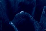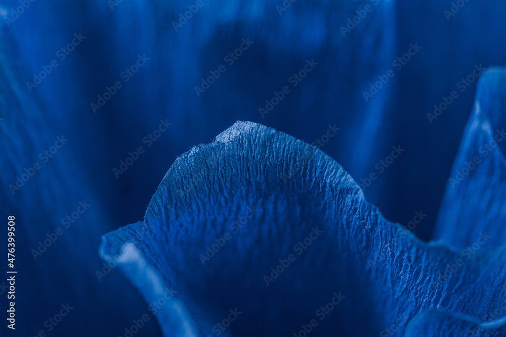 Fragment of a blue flower made of crepe paper. Blurred background. Soft selective focus