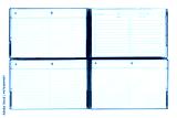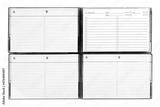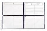 4 cassette tape boxes, cases, blank empty A and B side titles description tables, placeholders template, object isolated on white, cut out, nobody. Music album tracklist, track list tables closeup