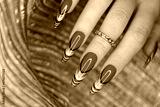 Creative French manicure in beige brown nail polish colors.