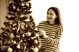 Young woman preparing Christmas tree for decorations.