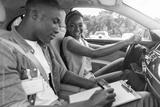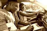 Black man instructor examinating happy lady student
