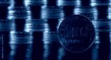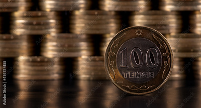 Coins of denomination of 100 Kazakhstani tenge on a black background