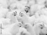 Indoors chicken farm, chicken feeding