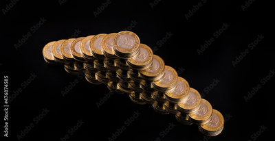 100 Kazakhstani tenge coins stacked in the form of a pyramid