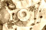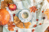 Autumn composition with pumpkin and rose hips