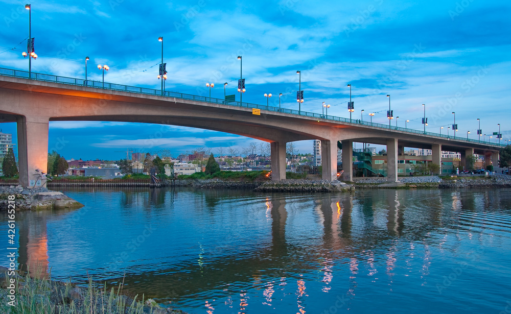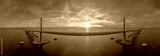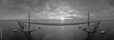 Drone panorama of Sunshine Skyway Bridge over Tampa Bay at sunset