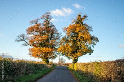 Old oak trees down the country lane.