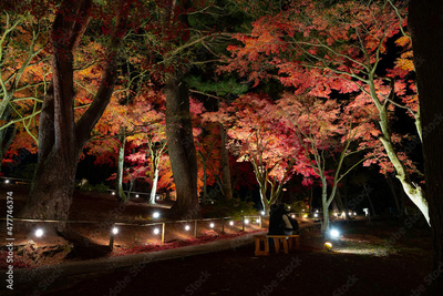 静岡県伊豆市修善寺 虹の郷の紅葉ライトアップ