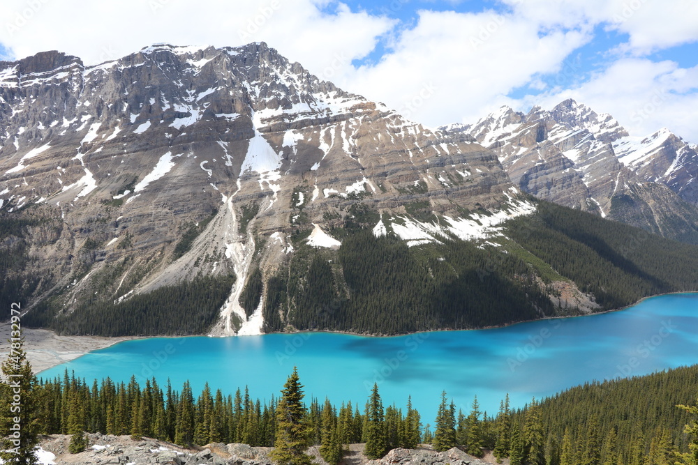 What a beautiful blue Peyto Lake. Wonderful road trip through Banff and Jasper national park in British Columbia, Canada. An amazing day in Vancouver. What a beautiful nature in Canada.