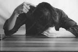Man stressed with hair loss problem. thinning hair. scalp problems