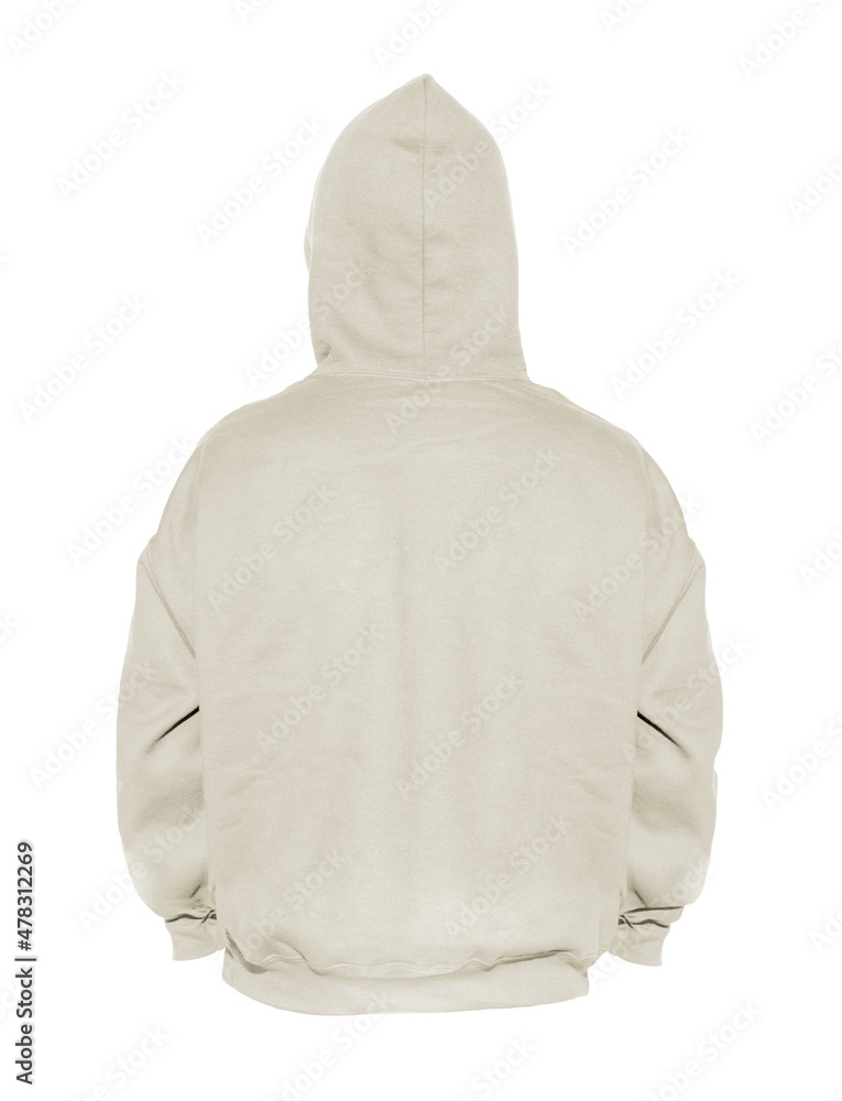 Blank hoodie sweatshirt color beige on invisible mannequin template back view on white background