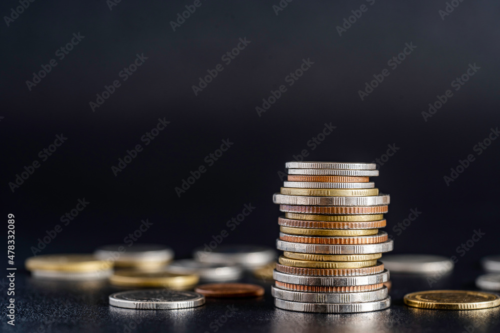 coins stacked on each other in different positions, Growth money of profitability of professional investment planning, Business, and finance concept.