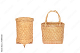 bamboo products, weave , bamboo basket two style isolated on white background with clipping path include for design usage purpose,