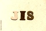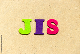 Color cloth alphabet letter in word JIS (abbreviation of Just in sequence) on wood background