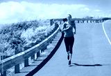 Fit young woman running jogging on country road