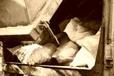 Car with bags of rubbish. Garbage truck