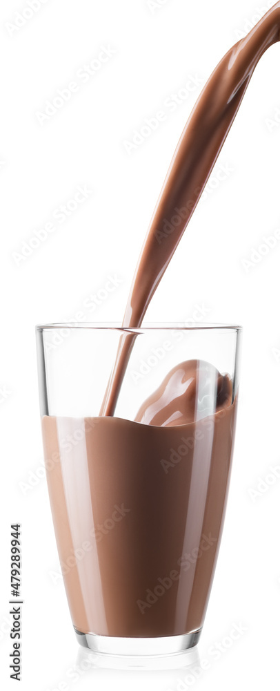 chocolate milk or cocoa drink pouring into glass