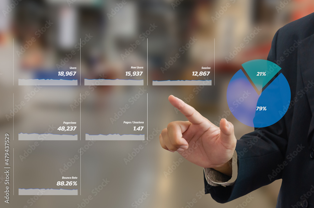 Business, communication, social networking, data analysis. hand BOUNCE RATE touch virtual screen.