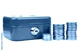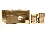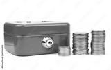 Cash box with lock and stacked coins