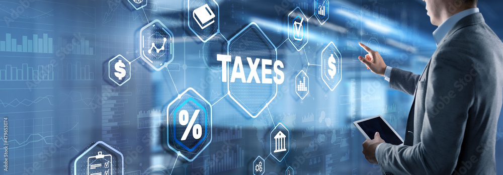 Concept of taxes paid by individuals and corporations such as VAT, income tax and property tax. Background for your business
