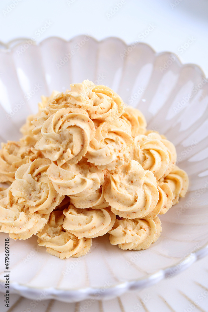 Kukis Sagu Keju or Cheese Sago Cookies is one Favorite Cookies in Indonesia for Christmas or Lebaran. White Concept of Bakery,