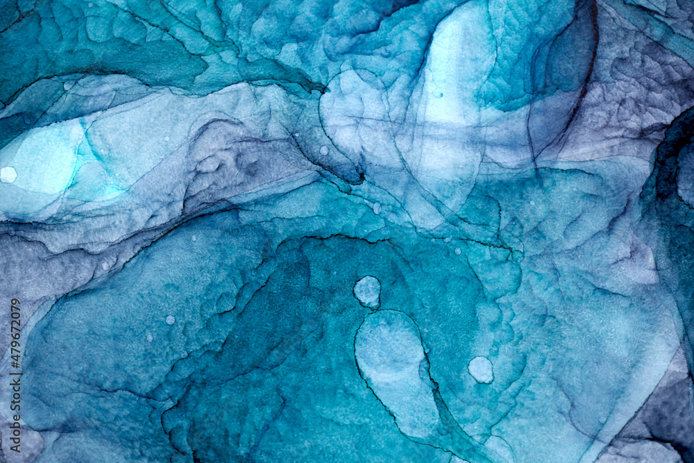 Abstract green blue gray ink watercolor background, paint stains and spots in water, luxury fluid liquid art wallpaper, marble texture