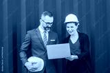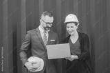 Businesspeople teamwork on site loading containers to for Logistic Import Export Background, Business logistic concept, import and export concept