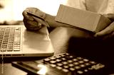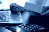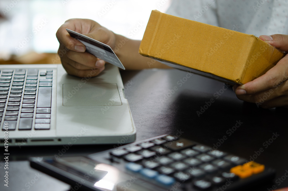 Shopping online by credit card. Pack products to send parcels to the post office. internet marketing business technology concept